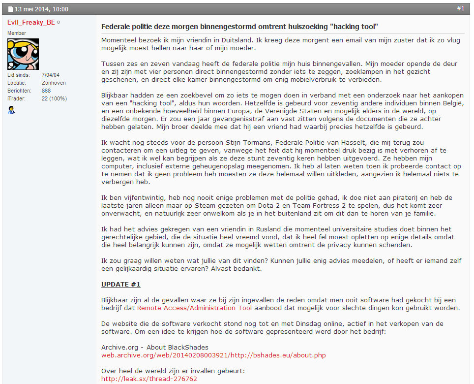 And last one, here's a Dutch user talking about his arrest on a sole Dutch forum.